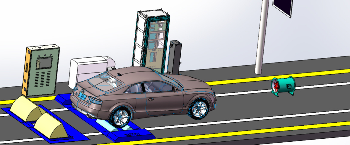 道路的模拟关键在于移动,由于整个系统空间相对固定,所以采用具有稳定位置精度的滚筒,滚简的转动即可代替移动的路面。将被检车辆的轮胎与滚筒相接触,即可实现两者外切相对转动,从而通过相应的检测仪器对车辆的模拟运行状况进行动态检测。