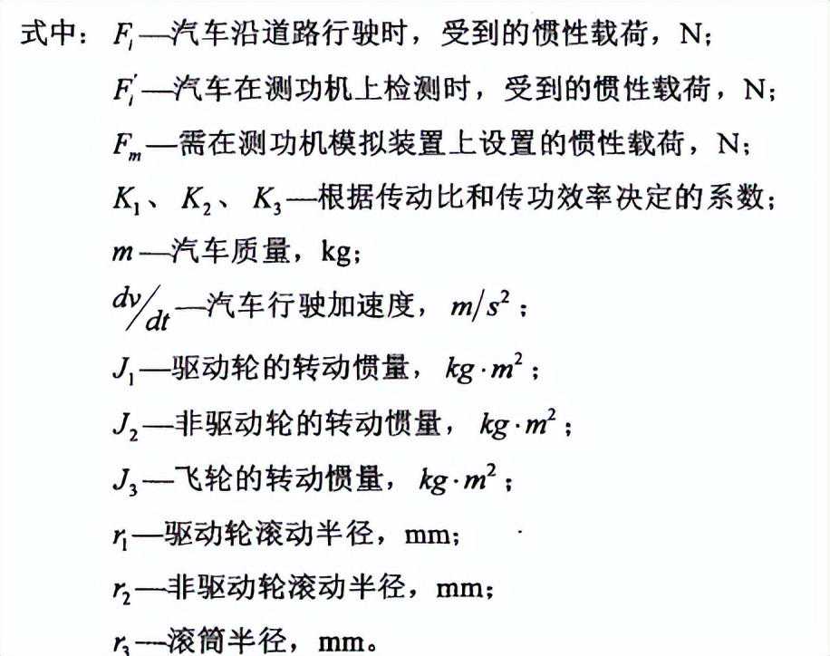 在测功机上检测时,需模拟道路行驶产生的惯性阻力,此时要克服的阻力为: