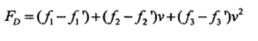 由以上描述可知,通过滑行法可测得汽车的总阻力,包括空气阻力和车轮滚动阻力,除去上述公式中已测得的轮胎与滚筒接触、机械结构传动和机器台架本身产生的阻力后,在测功机上应设定的测功机曲线为:
