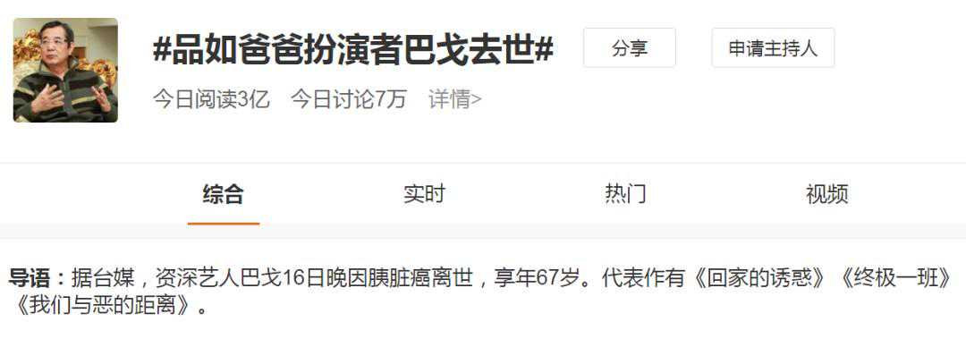 不过,近两年,巴戈确实因为身体的原因慢慢淡出了演艺圈,对于他的去世,圈内好友也纷纷表达不舍与悲痛。
