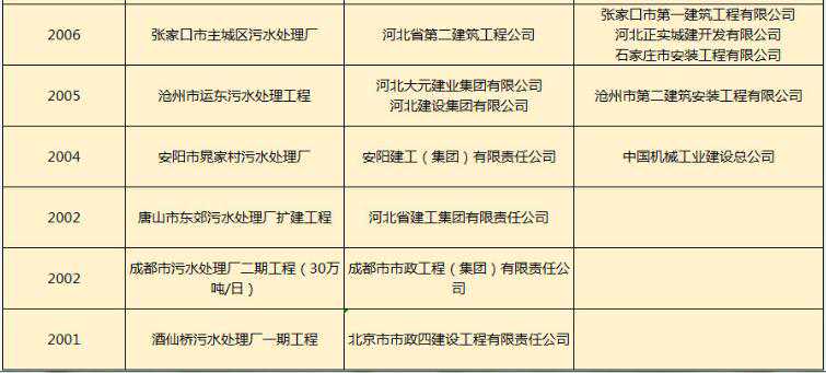 近20年来获得鲁班奖的污水处理项目
