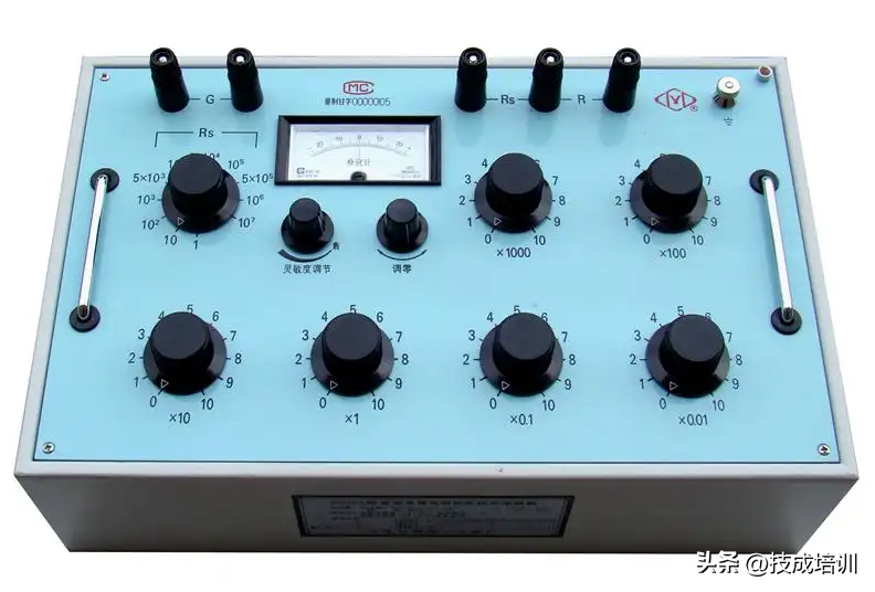 基于此,若我们稍微改变四个电阻中的任意一个电阻的阻值,就会造成中间点电位发生变化,此时中间点支路就会产生电压或电流,也就是说,此时电桥不平衡了。若在中间点支路上接一个检流计,那么,我们就能根据检流计指针的偏转判断电桥是否处于平衡状态,这就是电阻箱的工作原理,是不是很简单?