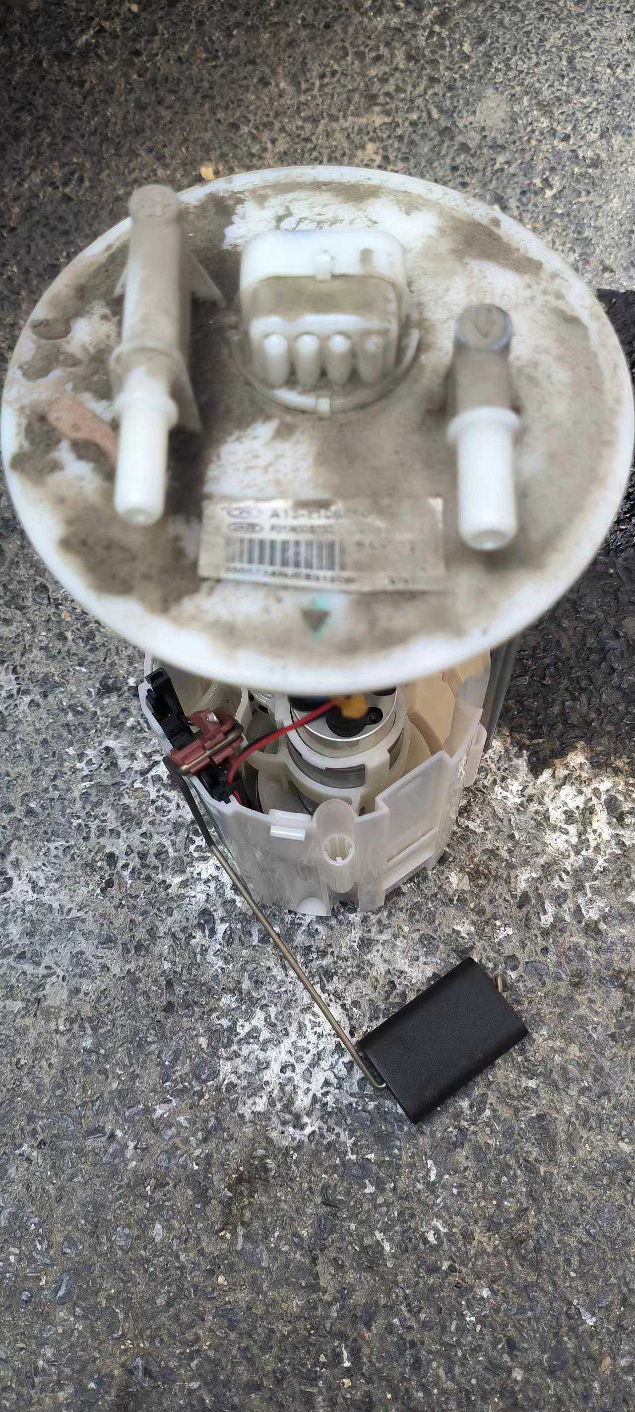 安装师傅比较粗暴,用锤子+粗套筒,对着固定油泵的塑料壳一顿敲,就把这个塑料的大螺丝外壳卸下来了。然后慢慢把油泵提起来,把里面的油倒干净,换上新油泵。
