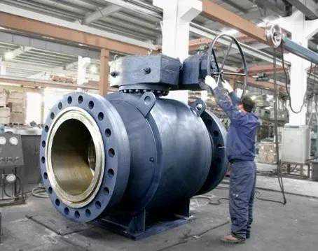 固定球阀,通过旋转阀门中的球体来控制阀门的打开和关闭,球体中间有一个通孔,可以旋转90°,通孔的直径等于或小于管道的直径,当球体旋转90°时,管道进出口面都是球面,从而关闭阀门,截断流体,当球阀回转90°时,管道进出口面都是球孔面,流体通过阀门,球阀可旋转到不同的角度,从而可控制流体的大小;固定球阀常用于一般管线上,如输送水,油,蒸汽等。