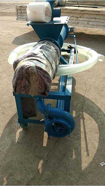 2、再由绞龙将粪水逐渐推向机器的前方,同时不断提高机器前缘的压力,迫使物料中的水分在边压带滤的作用下挤出网筛,流出排水管。