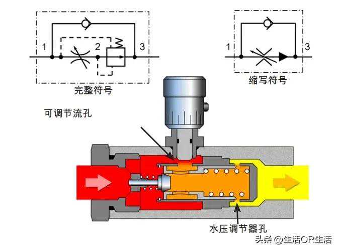 第三类为三通流量调节阀,这类阀的优先通道和旁通路通道的通流面积可以随着合个压力口的压力去改变,从而保持流量不变,实现流量调节!这跟我们通常说叫的调速阀差异就比较大了!