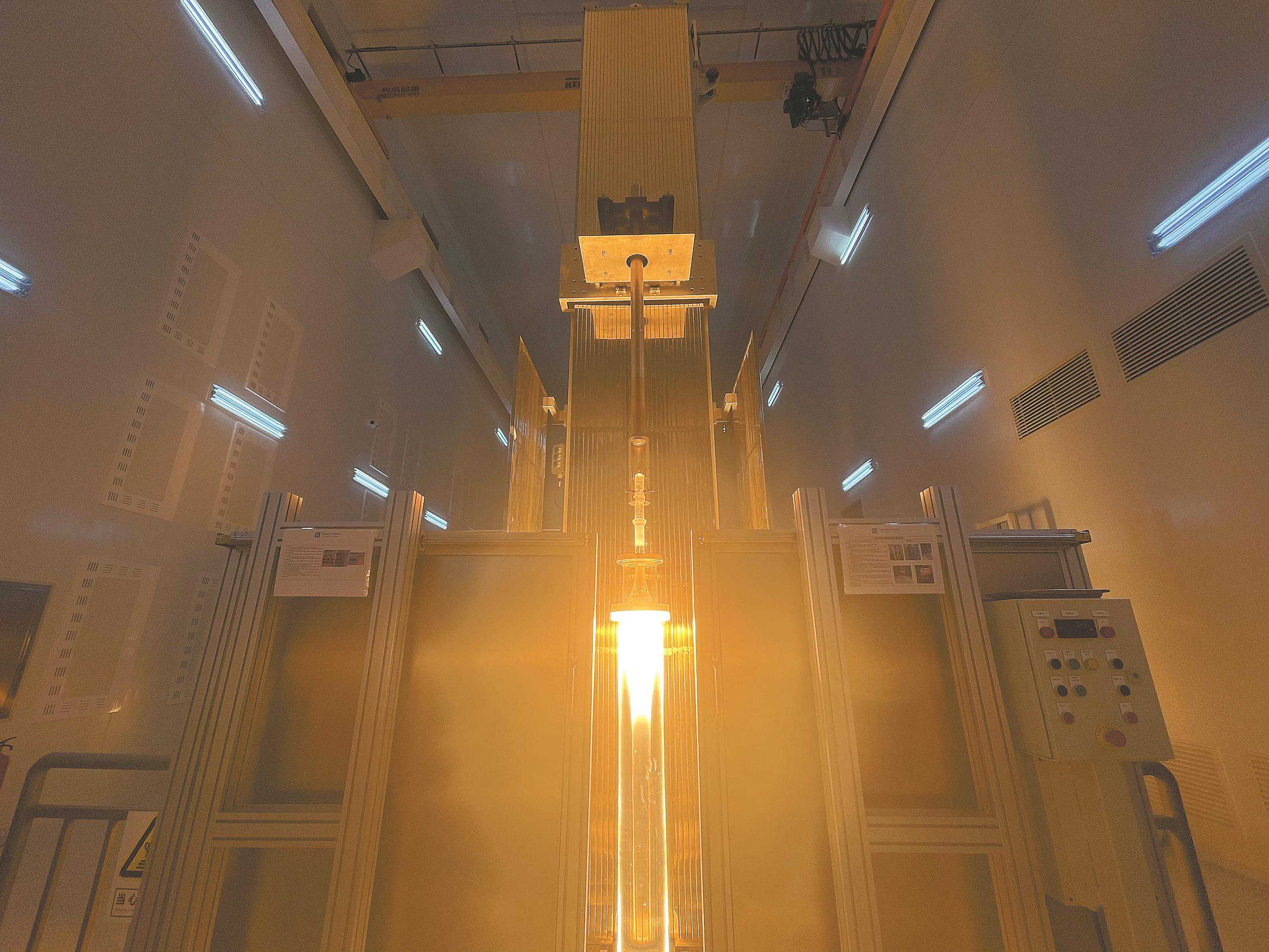 5月5日,安徽长荣光纤光缆科技有限公司的拉丝塔正拉制光纤。本报记者范孝东方舢摄