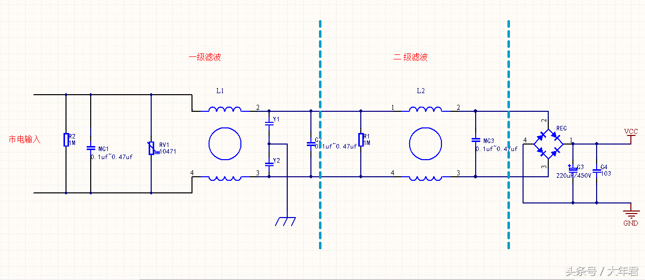 有些电源滤波器有两级电路,这样效果相对更好