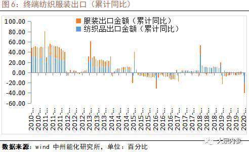 国内疫情的影响:终端纺服内需在中国疫情得到控制的情况下,需求随复工复产逐步恢复,不过由于错过了近一个月的春装销售旺季,内需下滑不可逆。同时外需也造成了影响:2020年前两个月的纺织服装出口金额累计同比均为-20%左右。