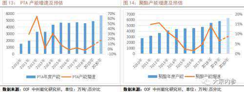 PTA从2019年进入新的产能扩张周期,今年的产能投放压力有增无减。2020年年初已经有370万吨的新产能投放,年内预计还有500万吨新产能投放。下游聚酯由于装置较为分散,产能投放的确定性小于PTA。目前了解到聚酯的新产能投放也有所延迟。在2018年,聚酯产能扩张幅度是近几年的高点,19年增速放缓,预计今年增速较19年小幅回升。从供给增量和需求增量的角度看,PTA供大于求的格局短期难以改变。