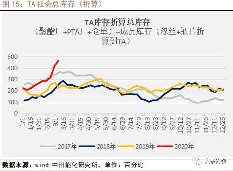 PTA社库已经累至300万吨以上,仓单也达到了64万吨。库存也是历年同期的最高水平。