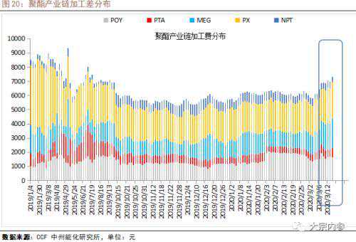 海外疫情的影响更多的是自上而下的去影响定价和各个环节的利润分配。首先从进口依存度较高的PX来分析。