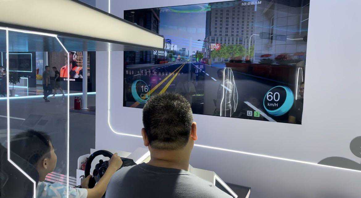 未来的智能道路大家认为会是什么样?假如能边行驶边为汽车充电,大家觉得好吗?在位于N6展馆的国家电网展台,一台名为“电动汽车虚拟驾驶”的展项吸引大家排队体验。据介绍,“电动汽车虚拟驾驶”可选择不同的新能源汽车来进行模拟驾驶,其最大的特点是能让观众感受到在最新的光伏智能道路上驾驶的感觉。现场,工作人员讲解说呢,现在模拟的这段高架是光伏道路,由半透明新型材料和光伏发电组件组成,当新能源汽车驾驶在上面时,它就变成移动的太阳能充电宝。而在两旁的风光储一体路灯,可通过自然能量来提供光照,未来它将为城市节能减排,推动智慧交通提供全新模式。展台工作人员介绍:目前根据我们现有的这种充电的方式,是去电动充电桩去充电,当然在未来的话,我们也希望能够更快更便捷的去充电,然后能够在道路上行驶过程中通过地面铺设光伏板,对我们绿色电动车实现一个无线充电,这是我们对未来美好生活的一个愿景。
