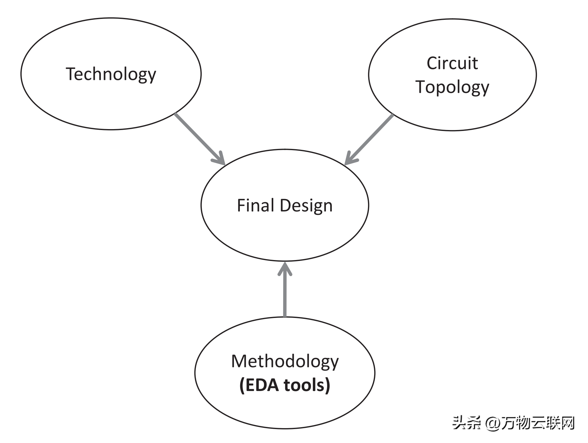 技术、电路拓扑和方法至少三个因素可以决定最终的设计。图4显示了最终设计与技术、拓扑和方法之间的关系。通过了解这三个因素的“成熟度”程度,就可以预见最终设计的“新颖性”。要将集成电路“商业化”为产品,成熟度应该很高。缺乏成熟度可以被视为研究人员的研究空白。最终设计需要考虑可测试设计(DFT)或可制造性设计(DFM)。