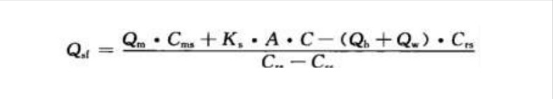 Qsf-旁滤量,Qm-补水量,Qb-排污量,Qw-风吹损失水量,Ks-空气悬浮物沉降系数,A-冷却塔空气流量,C-空气含尘量,Cms-补充水悬浮物含量,Crs-循环水系统悬浮物含量,Css-滤后水悬浮物含量。