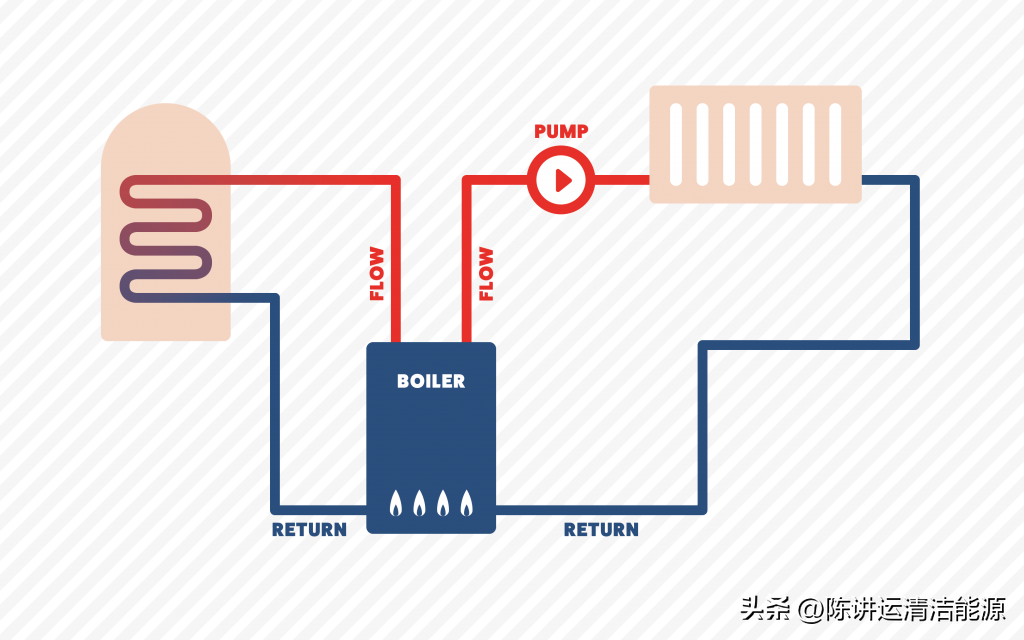 下图显示了中央供暖系统中中央供暖泵的位置。