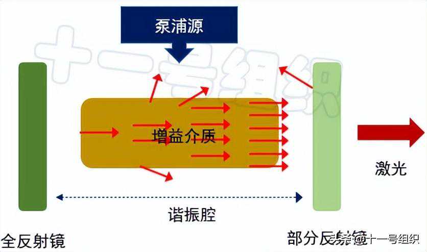 为了实现这个过程,一是需要采用容易发生高低能态电子数反转现象的工作物质,这种物质被称为增益介质。二是需要对增益介质进行激励并提供让增益介质不断发生粒子数反转的能量源,被称为泵浦源。增益介质在泵浦源的激励下,发生粒子数反转,这是激光产生的前提条件。