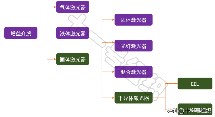 增益介质是光子产生的源泉,基于这个维度,激光器可分为气体、液体、固体三种类型,固体类型激光器又可细分为固体、光纤、混合、半导体等类型,如图6所示。应用在汽车领域的激光雷达,以半导体激光器和光纤激光器为主,下文我们对这两类激光器展开介绍。