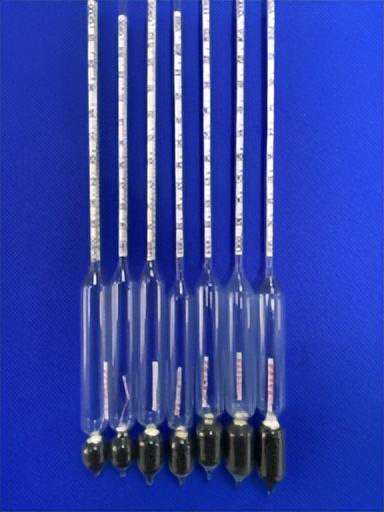 密度计是一种测量液体密度的仪器,是依据物体的重力和它漂浮时所受力的平衡及阿基米德原理制造和工作的。密度计通常是一根粗细不均匀的密封玻璃管,管的下部装有少量密度较大的铅丸或水银。使用时将密度计竖直地放入待测液体中,待密度计平稳后,刻度位置所指示的值即为液体的密度值。
