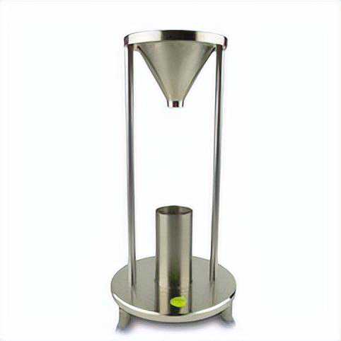 该仪器的工作原理为,将一定质量的试样通过上方的圆锥形漏斗,自由落入已知容积的圆柱形料罐中,准确称量装满料罐的试料的质量,质量与体积之比即为该试料的堆积密度。
