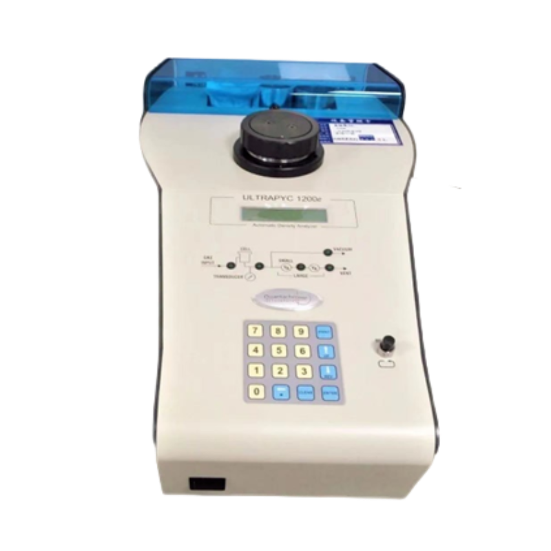 其测试原理就是在已知体积的容器内加入试样,密闭容器后通入一定气体(通常采用氦气),用压力传感器测出容器内的压力,然后将容器内的气体向另一已知压力和体积的容器内扩散,用压力传感器测出两个连通容器内的平衡压力,根据气体定律得出试样的真实体积,经计算得出试样的真密度。