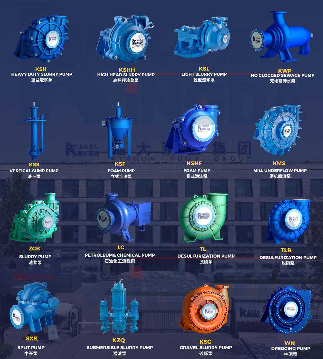 卧式渣浆泵:KSH、KSM、KSL、KSHH、KSG、KSGH、ZGB、KWP、TL(R)、KSHF、WN、LC、SXK、KMS