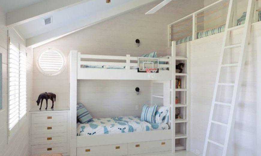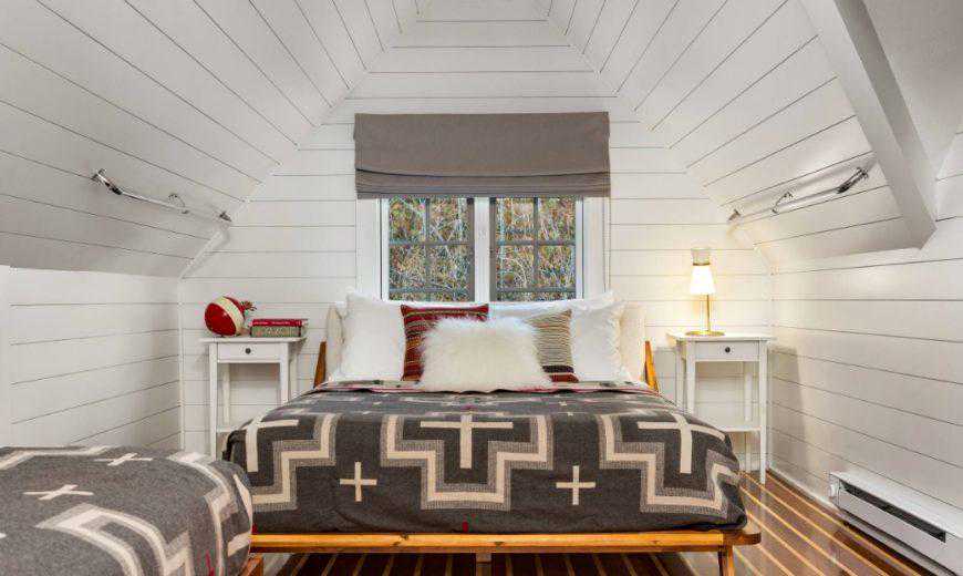 下面的房间适合任何想要自己舒适的空间的孩子。双层床和阁楼的舒适性与搭接的木质墙壁完美匹配。节省空间的设计很容易成为列表上我们的最爱之一。如果您正在寻找具有魅力和功能以及独特的老式搭接新潮趋势,那么您一定会喜欢这间卧室的外观。