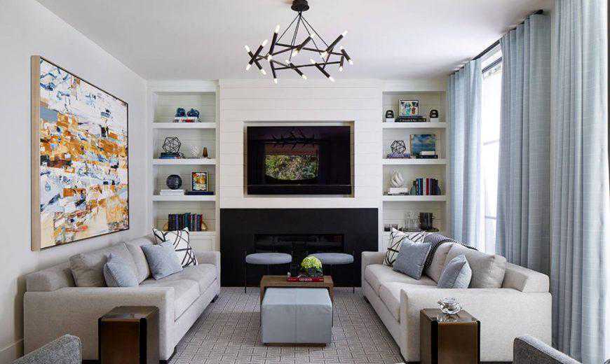 当将拼接板墙整合到您的家中时,您不必使它成为一个全有或全无的项目展示在房间的墙壁上。就像这张图片一样,拼接板墙可以用来为任何房间创建一个动态的中心点。一种方法是在你的壁炉或壁炉的周围安装石膏板,如果你足够幸运,在你的家里有这种特殊的舒适设施。20是吸引眼球但又不会让人难以接受的,而且添加了适量的家的感觉,这对于任何客厅都是完美的。