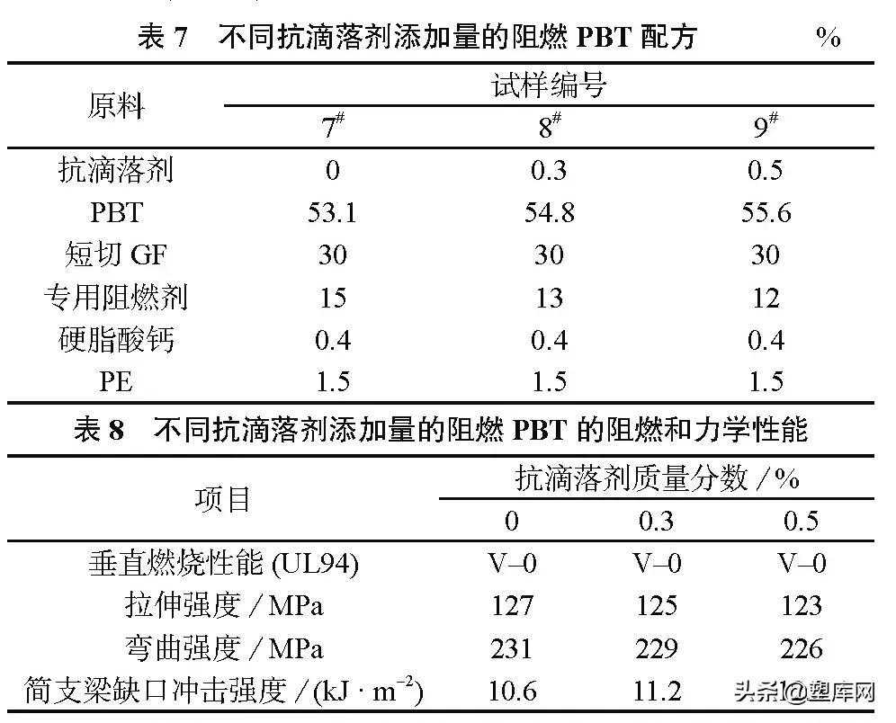抗滴落剂添加量对阻燃PBT性能的影响