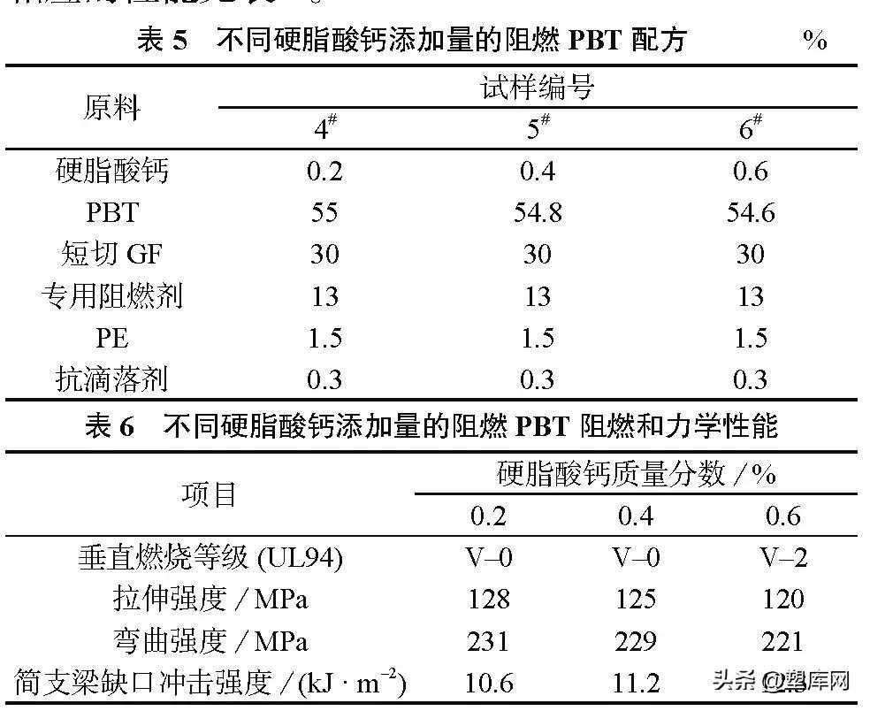 硬脂酸钙添加量对阻燃PBT性能的影响