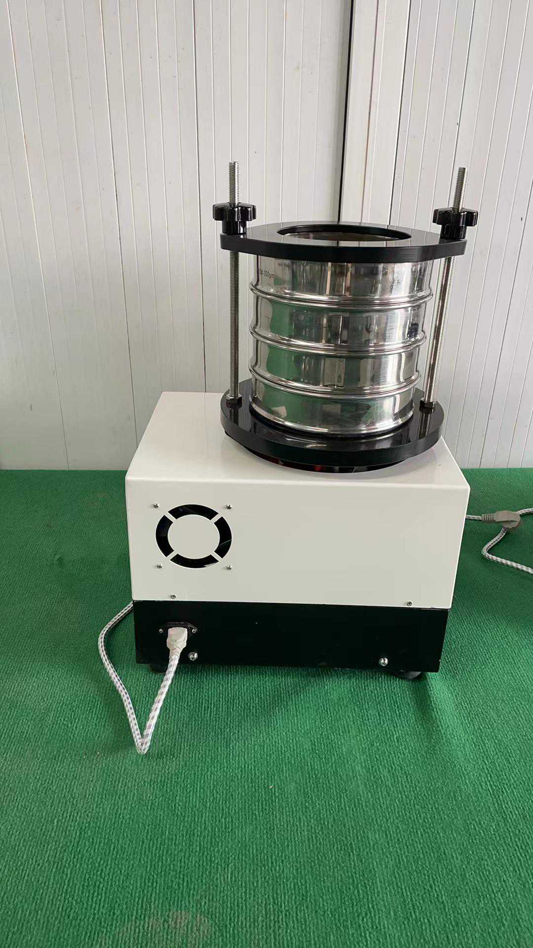 检验筛机是以振动电机作为振动源的,振动电机振动带动筛机底座振动,再通过底座传导到安放在底座上的标准筛上,使小于标准筛筛面网孔的物料颗粒筛分进下层筛里,如此层层筛选,使每层筛内只留相同粒度的物料。达到不同粒度的分离并确定此物料的粒度组成。使标准筛中的物料能有效地筛分、分级、过滤的目的。