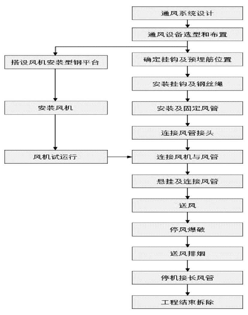 2.3施工工艺流程特长隧道横洞端压入式通风系统建造的过程复杂,其施工工艺流程如图3所示。