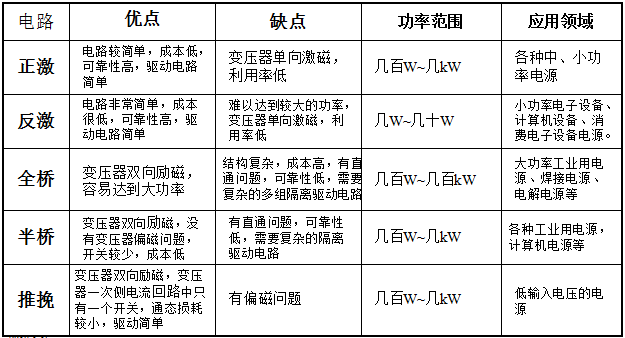 开关电源IC是指开关电源的脉宽控制集成,电源靠它来调整输出电压电流的稳定,在开关带能源当中,根据不同的输出功率选择不同的拓扑结构,下面是几种常用的电路形式: