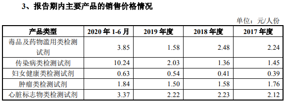 不仅如此,根据招股书披露的数据显示,奥泰生物的“毒品及药物滥用检测系列”在2020年上半年的产销量分别为1924万人份和1004万人份、库存产成品净增加了920万人份,“传染病检测系列”的产销量分别为4979万人份和4090万人份、库存产成品也净增加了近900万人份。