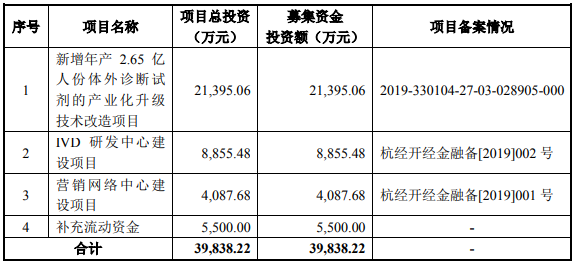 此外,本次上市奥泰生物计划募集3.98亿元投入到“新增年产2.65亿人份体外诊断试剂的产业化升级技术改造项目”等,其中还有5500万元用于补充流动资金。但与此同时,财务数据显示截止到今年上半年末公司的货币资金余额高达4.4亿元,其中包含购买理财产品的金额就高达3.16亿元,且无任何借款。