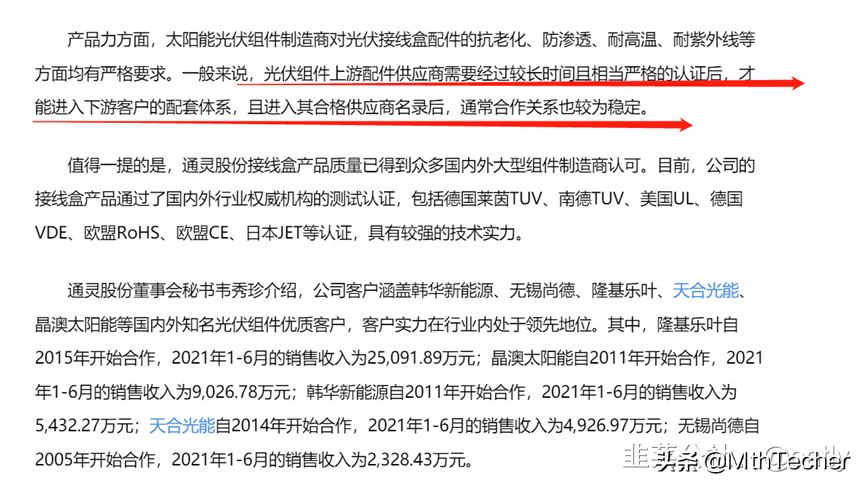 据了解,光伏组件上游配件供应商需要较长时间且严格的认证,如果一旦进入合作关系会非常稳定。