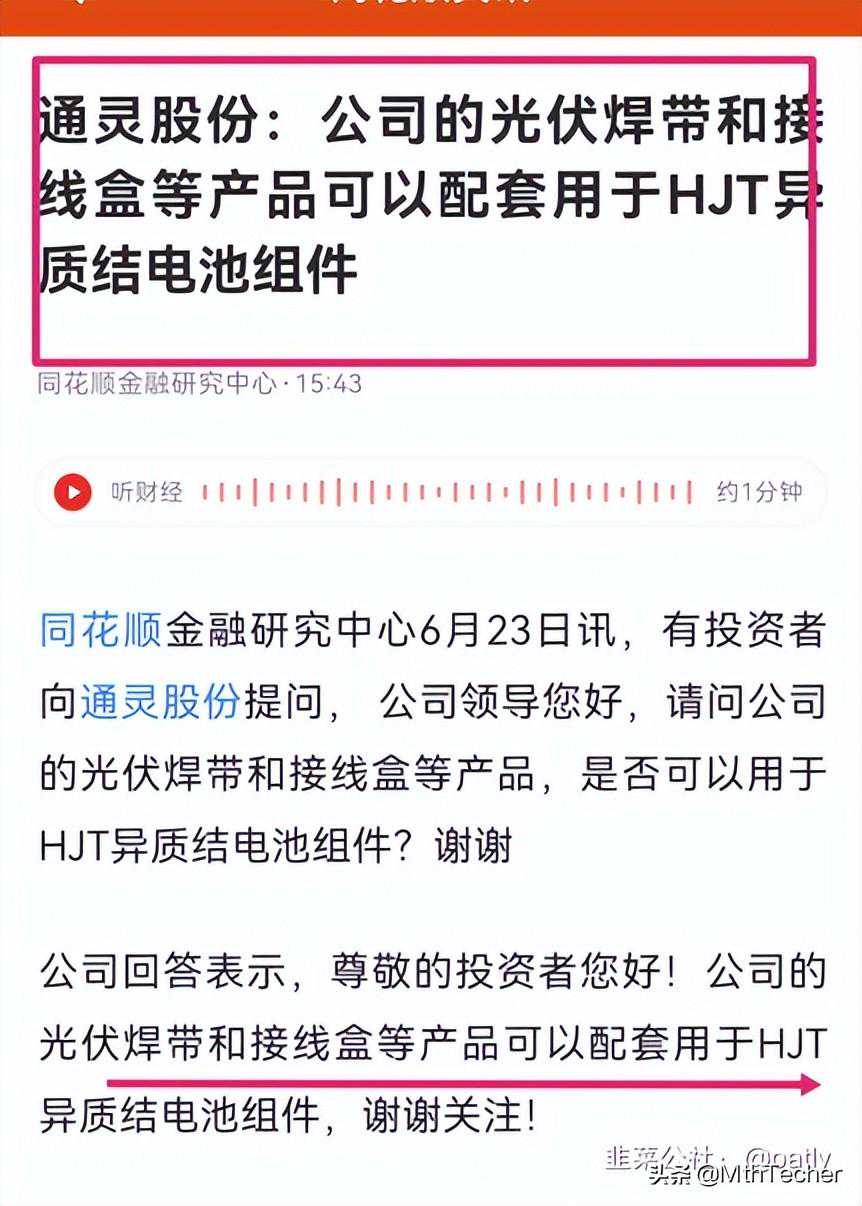 最新消息,隆基再次刷新HJT电池效率世界纪录,那么作为组件不可或缺的环节,通灵股份最受益。
