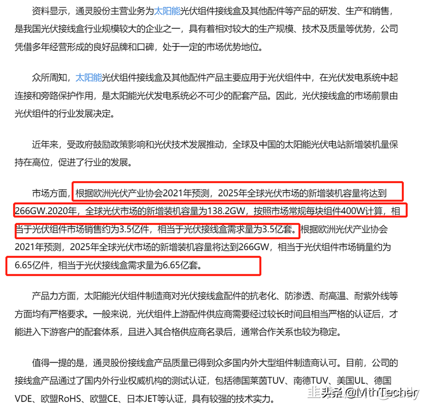 接下来就要分析一下这个接线盒有多大市场?能给公司带来多少利润?
