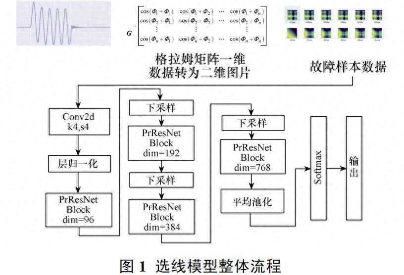 首先搭建仿真模型采集零序电流等数据,利用格拉姆角场变换将一维零序电流时序信息转换成二维图像信息;然后对残差网络(ResNet)进行改进,提出PrResNet用于提取图片特征;最后通过Softmax输出选线结果。