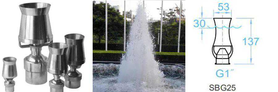 特性:水柱垂直向上,粗犷挺拔,抗风力强,声音较大。根据水泵的压力,喷高范围,低到0.5米左右。高可达6米。
