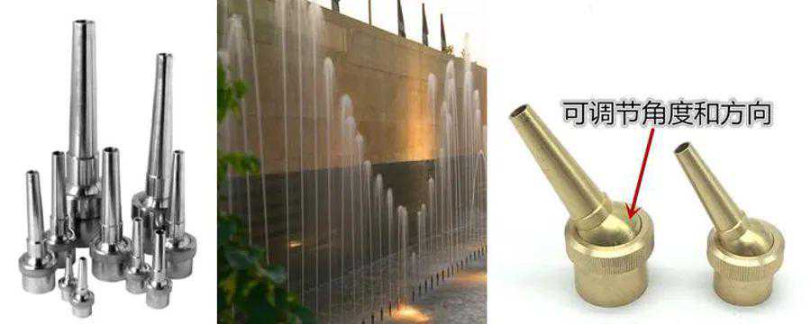 原理:水柱由喷口水流向上,由密实状态进入水珠状态,达到最高点,重力作用下落。喷头下如装有球形转动装置,可以正负十五度进行倾斜喷水,专业上叫万向直射喷头。