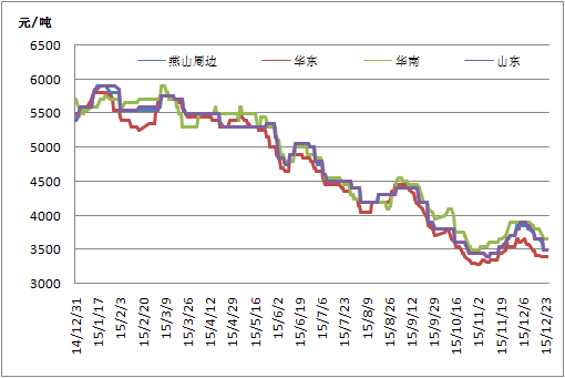 从2014年下半年开始,国内丙酮市场开启下行模式,2015年丙酮万劫不复的下跌,一整年没有翻身之地。拿华东市场为例,从2014年底5500元/吨跌至2015年底的3400元/吨,年内跌幅达到2100元/吨。市场在不短下行的过程中失去支撑点,市场重心屡创新低,让多数操作者失去操作信心。