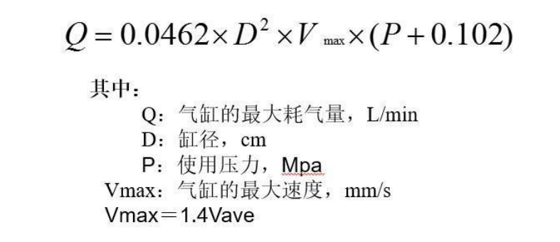 根据气缸缸径、行程、运行速度及使用压力计算出所需的耗气量。