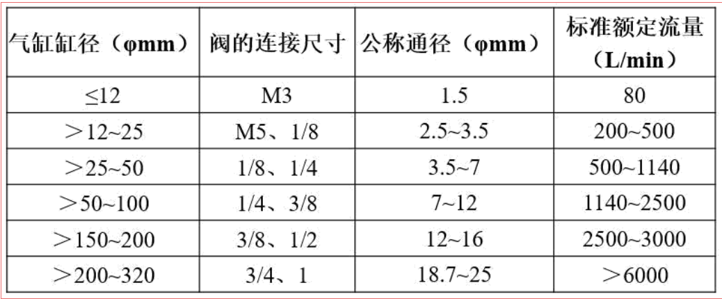 选择阀的流通能力应满足系统工作要求,即应根据气动系统对元件的瞬
