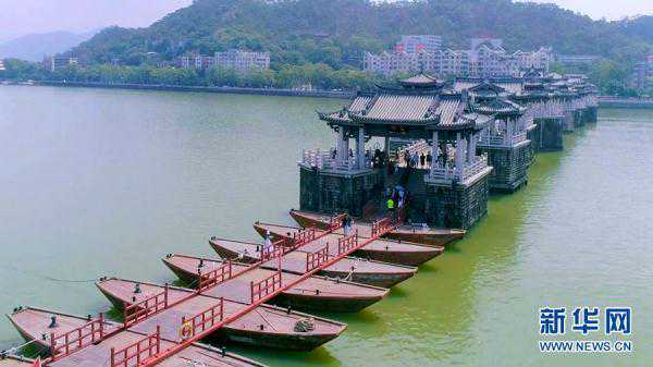 广济桥是由18艘木船链接在一起。新华网发(郑坚摄)