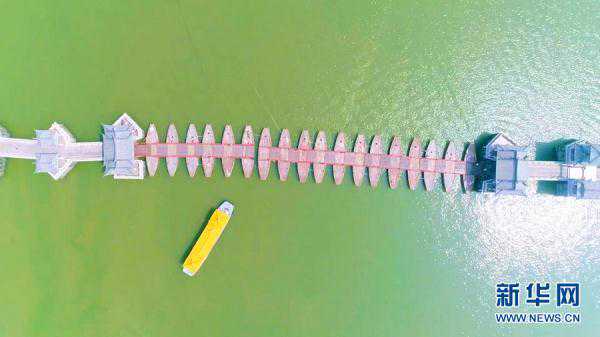夜间开启,以便船只通过。新华网发(郑坚摄)