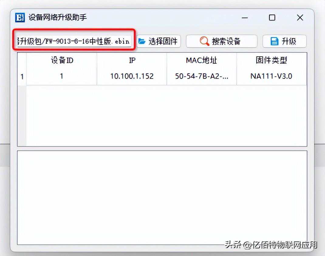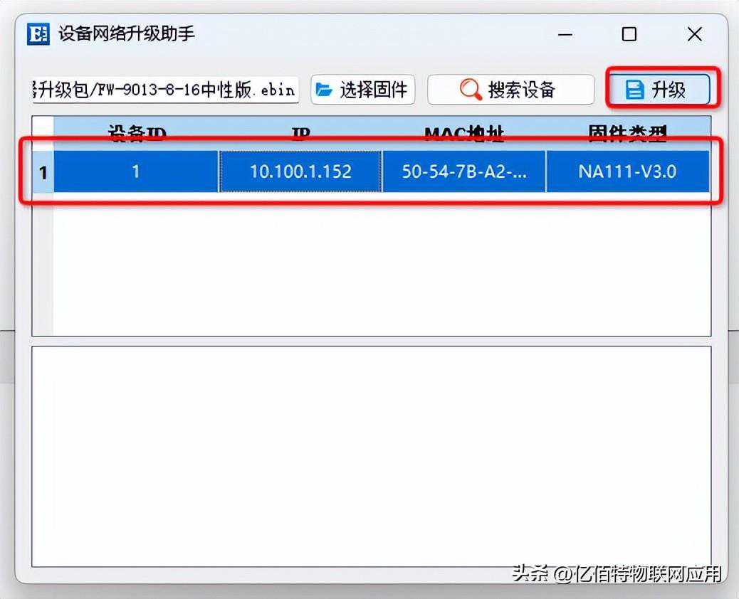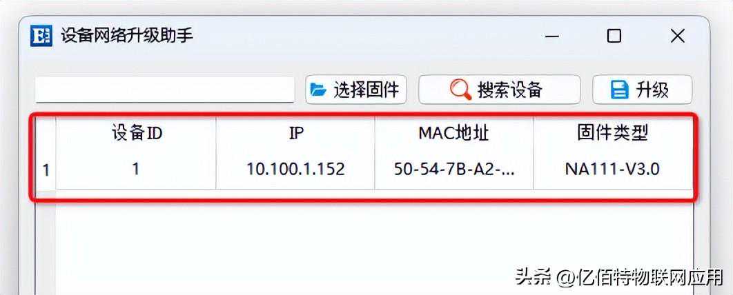 搜索到设备后,在此页面上,您可以看到支持升级的所有产品。包括产品的ID、IP地址、MAC地址和固件类型。
