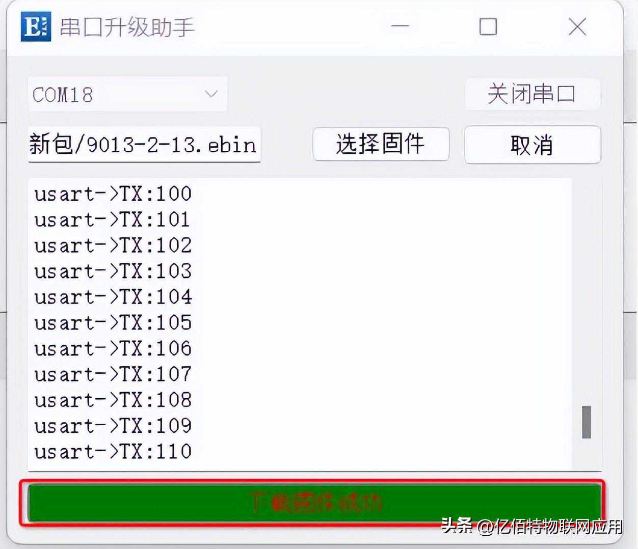 稍等片刻,在提示"固件下载成功"后,产品将自动重新启动。等待片刻,使用上位机重新搜索产品,即可看到产品的升级成功。