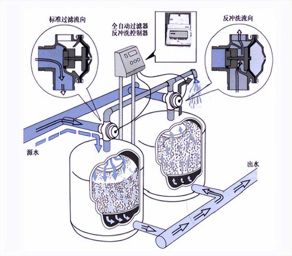 7、过滤和反冲洗过程可同时进行,系统自动维护产生的压力损失和流量的损失小;