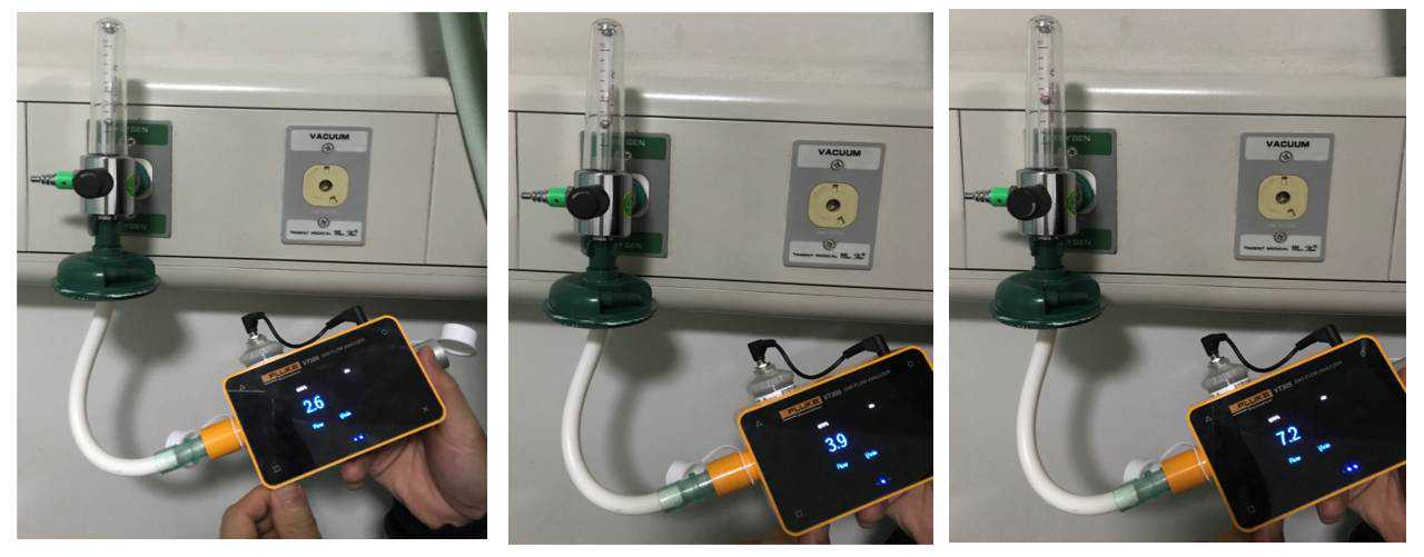 图右:流量表读数是5L/min时,检测值:7.2L/min。